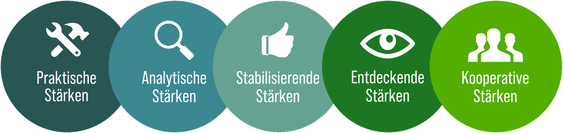 ausgewählt werden muss, werden die 5 Stärken skizziert, die bei einer Person am deutlichsten ausgeprägt sind. Dadurch allein kann sich schon ein gutes Gesamtbild der eigenen